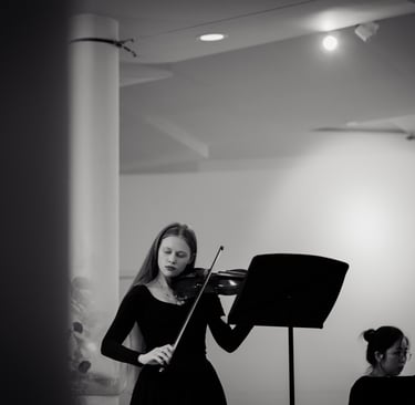 She has appeared on some of the world’s most prestigious stages, including the Musikverein Wien, Berliner Philharmonie, Palau de les Arts in Barcelona, and Casino Basel, and has participated in festivals across Ukraine, Germany, Spain, Italy, Finland, and Switzerland. Among them are the Rheingau Festival, Music Without Limits, Musik:Landschaft Westfalen, Festival der Neuen Bach-Gesellschaft, Elba Isola Musicale d’Europa, and the Fiskars Festival. Mariia has performed alongside distinguished musicians such as Guy Braunstein, Noah Bendix-Balgley, Kim Barbier, Denis Severin, Anton Barachovsky, David Geringas, Nicolas Altstaedt, and Dmytro Udovychenko.